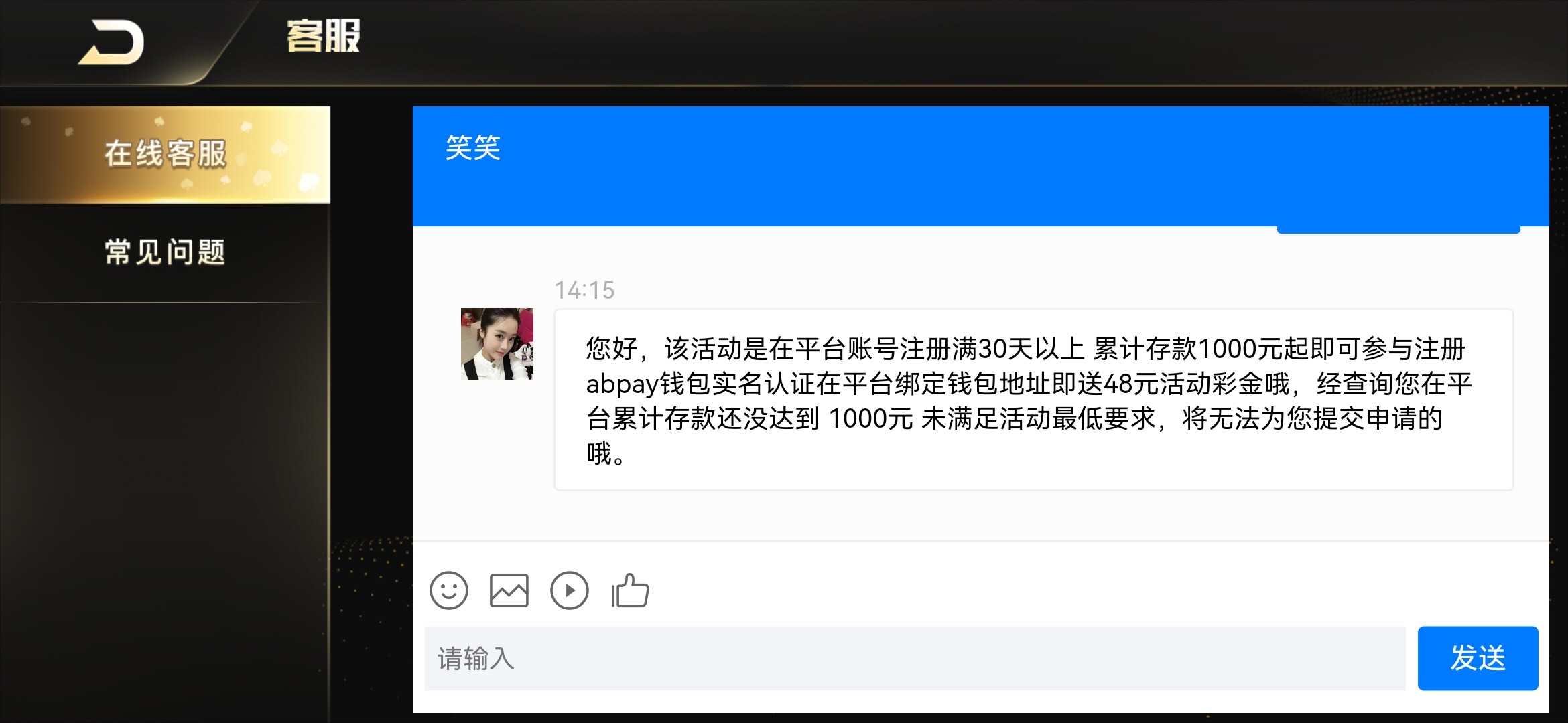 没用的,虚拟币这个我领了,直接到虚拟币账户,不是游戏帐户,通道最低100充值还要自己倒贴52,而且卖币也是最低100。