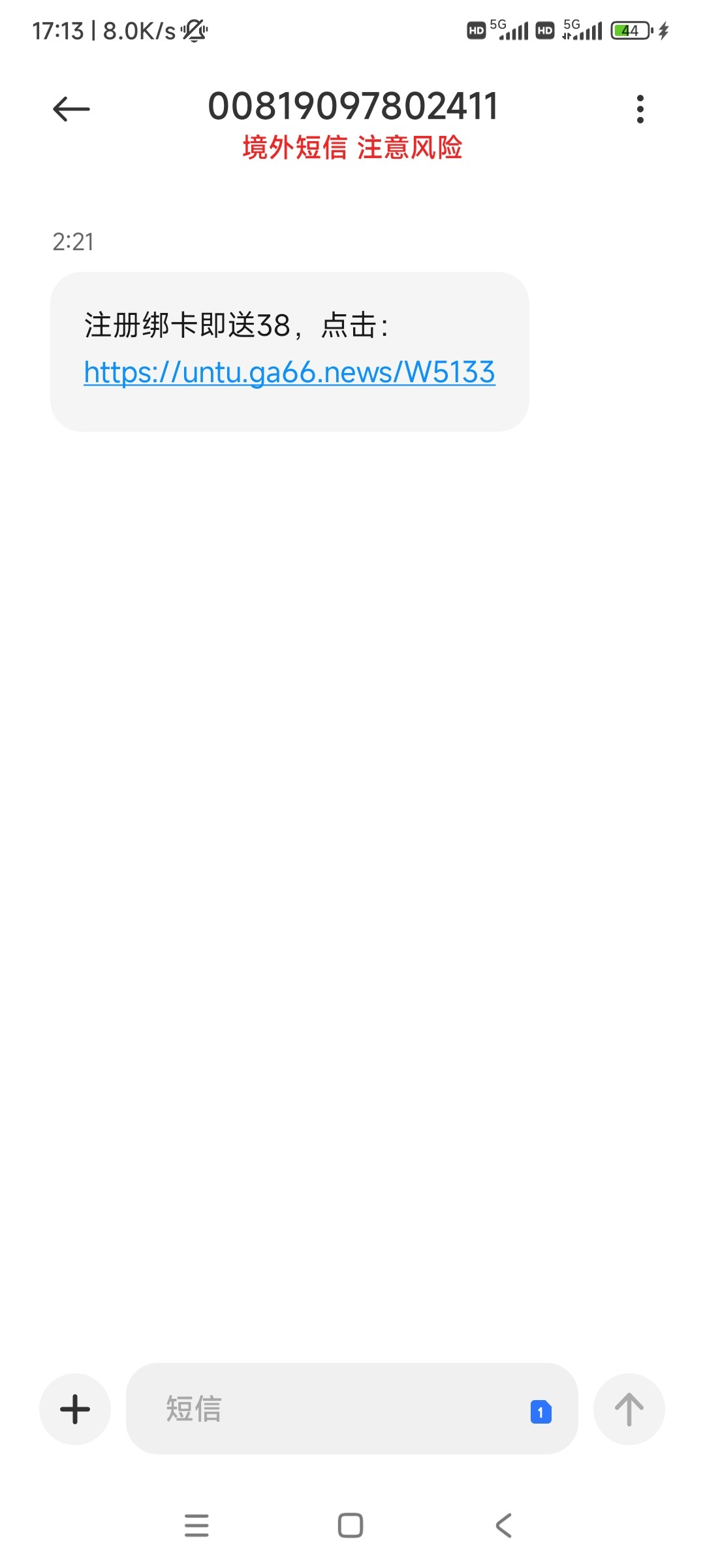 没见过境外短信 多半是没有