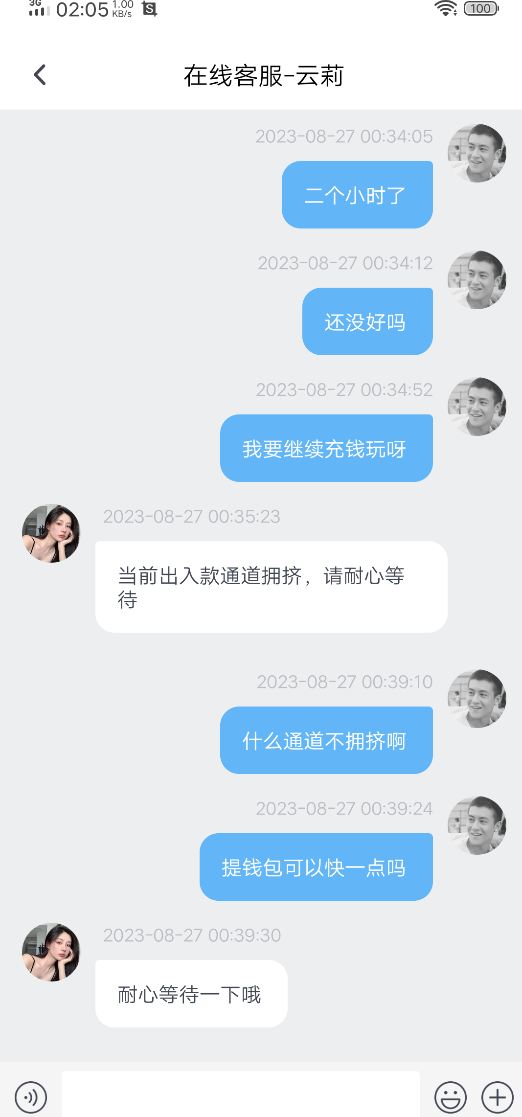 充一百提300不到账 一直在处理 让我一直等 一天了