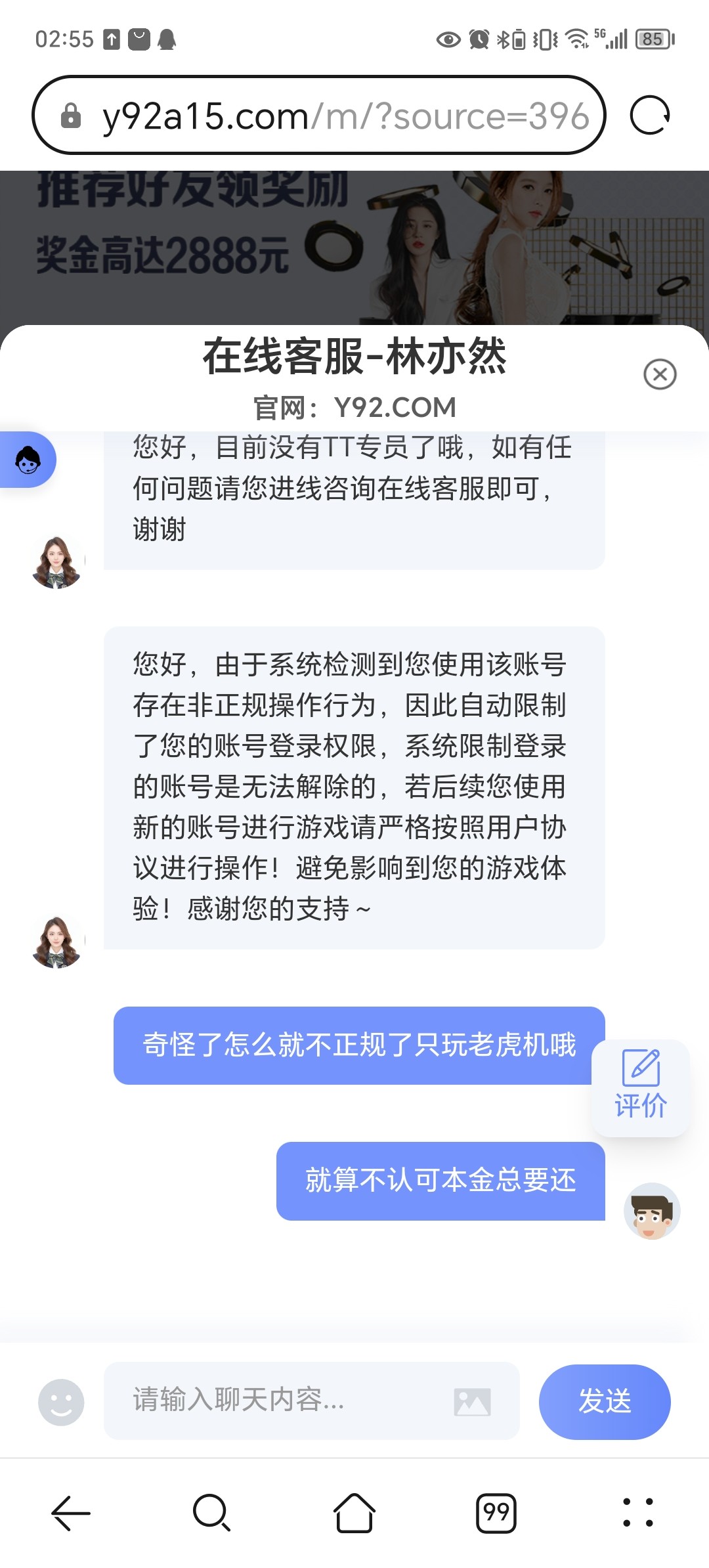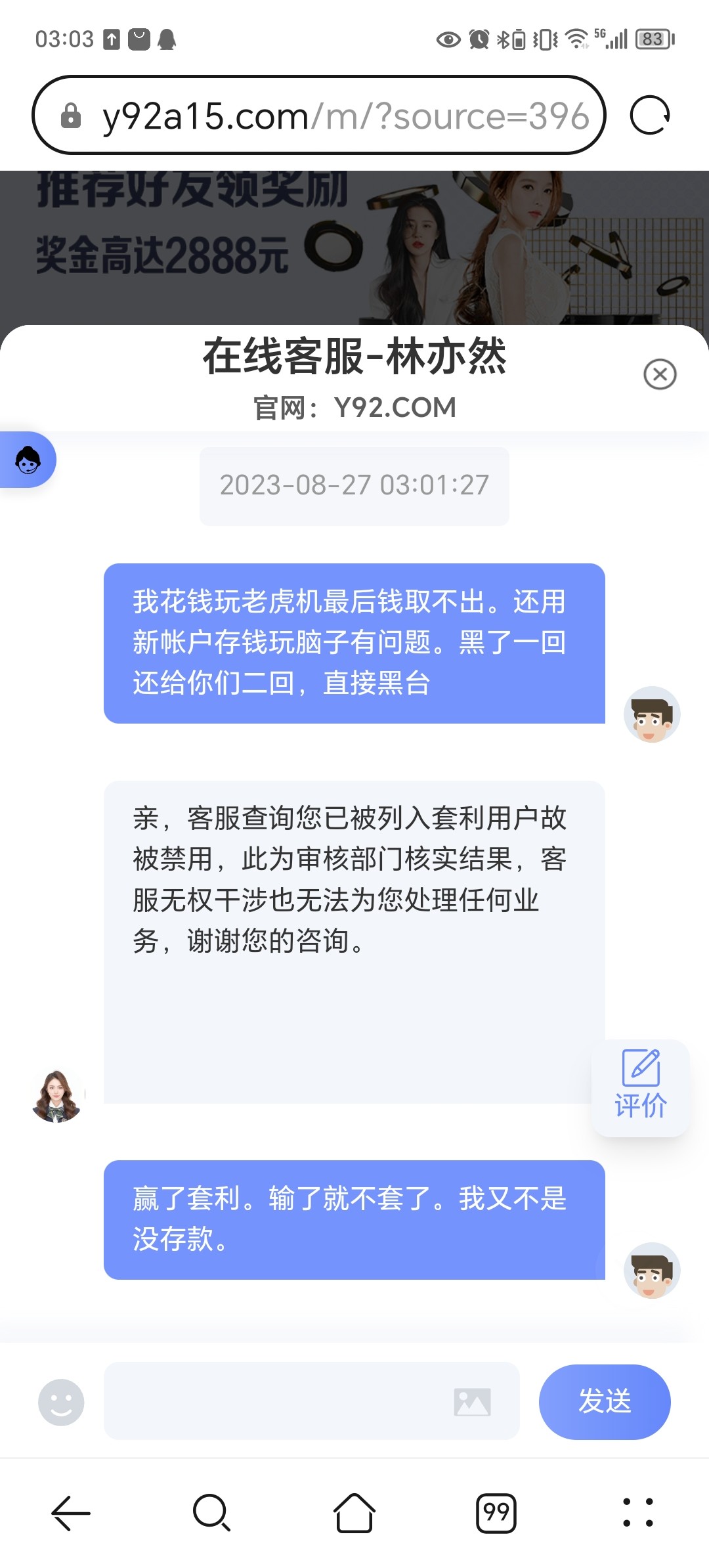 被y92.com黑了充300送300打玩流水提现就冻结了帐户直接黑台
