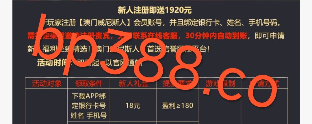 新用户先下载app再注册绑卡24小时以内自动赠送18彩金 游戏和提款限制自行查看优惠