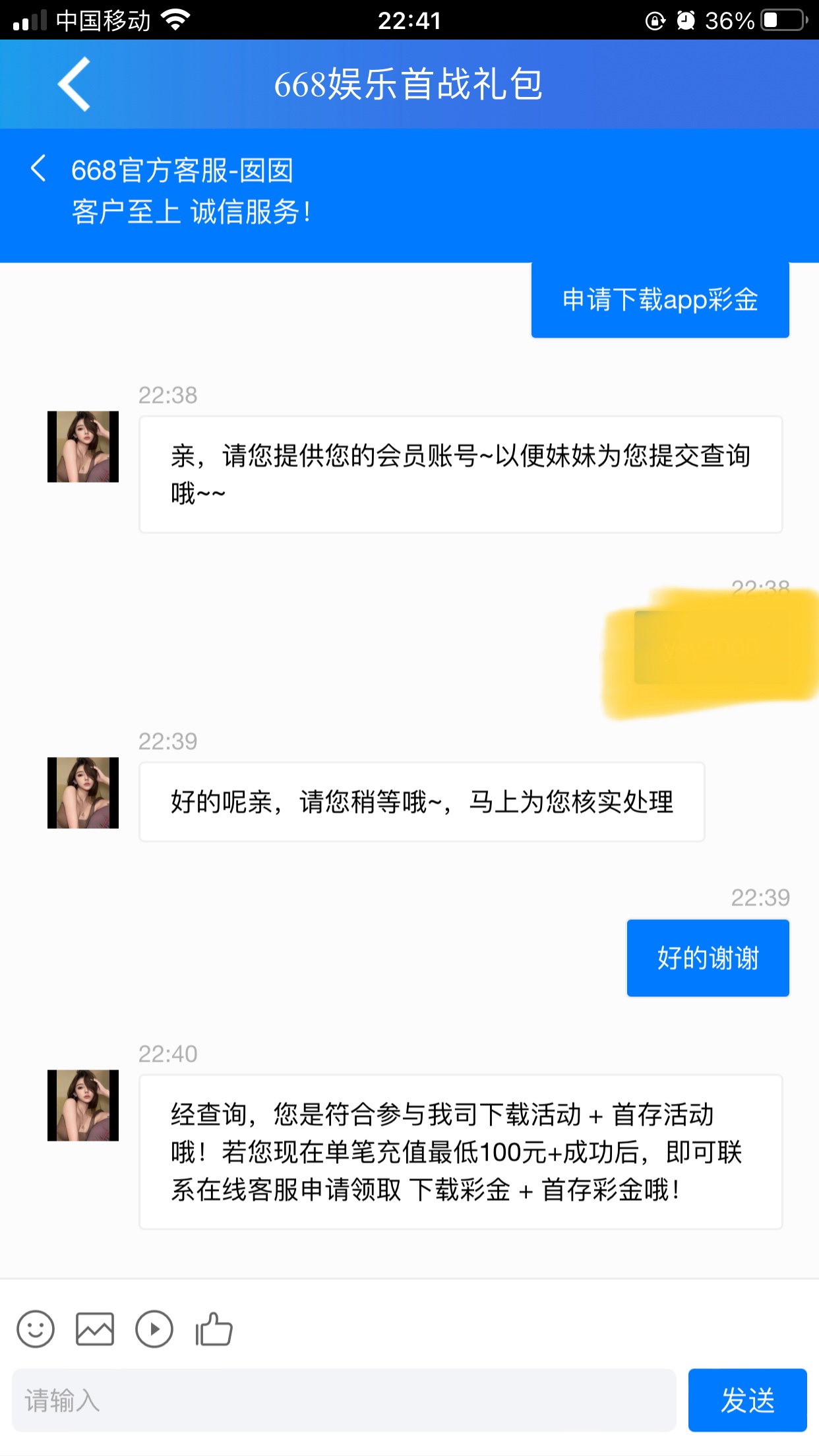 经查询,您是符合参与我司下载活动 + 首存活动哦!若您现在单笔充值最低100元+成功后,即可联系在线客服申请领取 下载彩金 + 首存彩金哦!