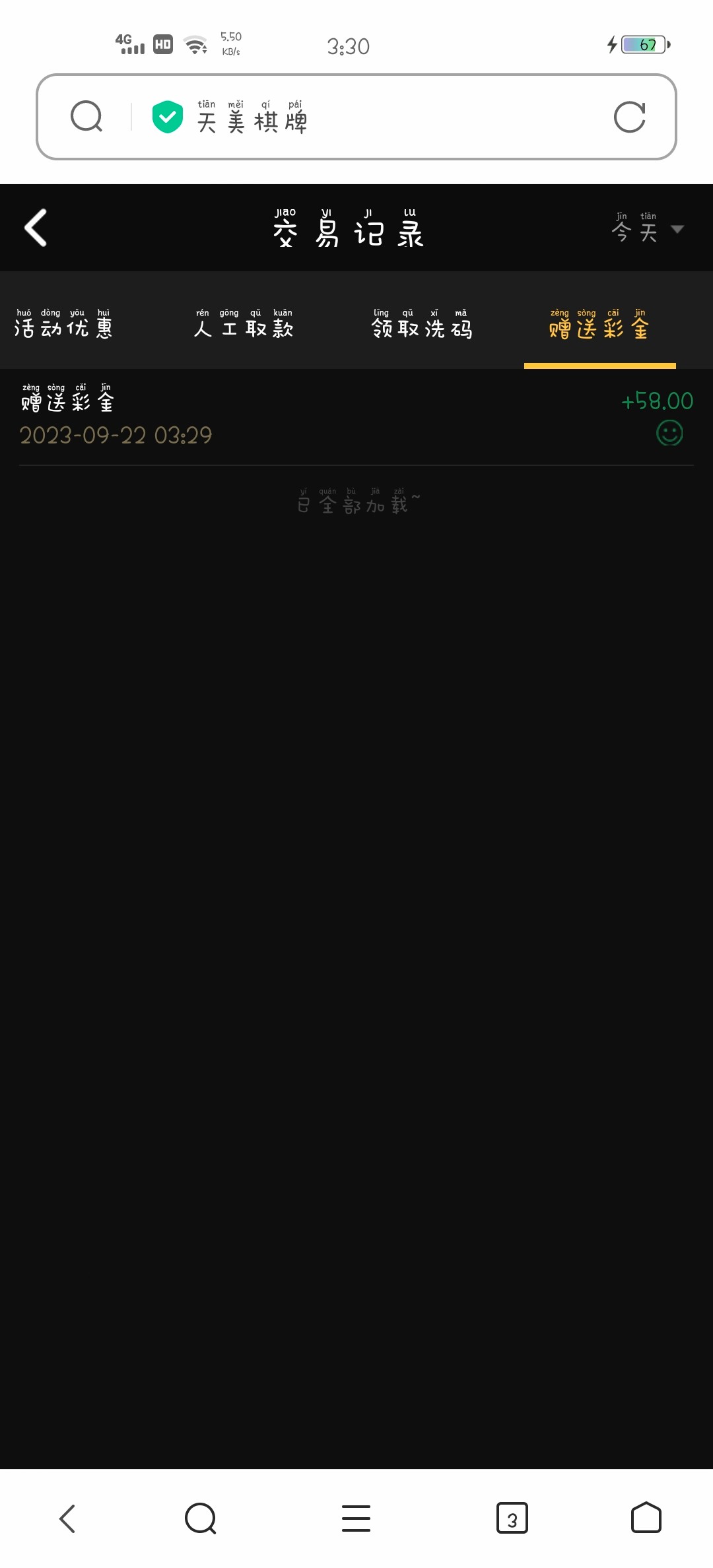 我有短信送了58,玩棋牌一把就没了!