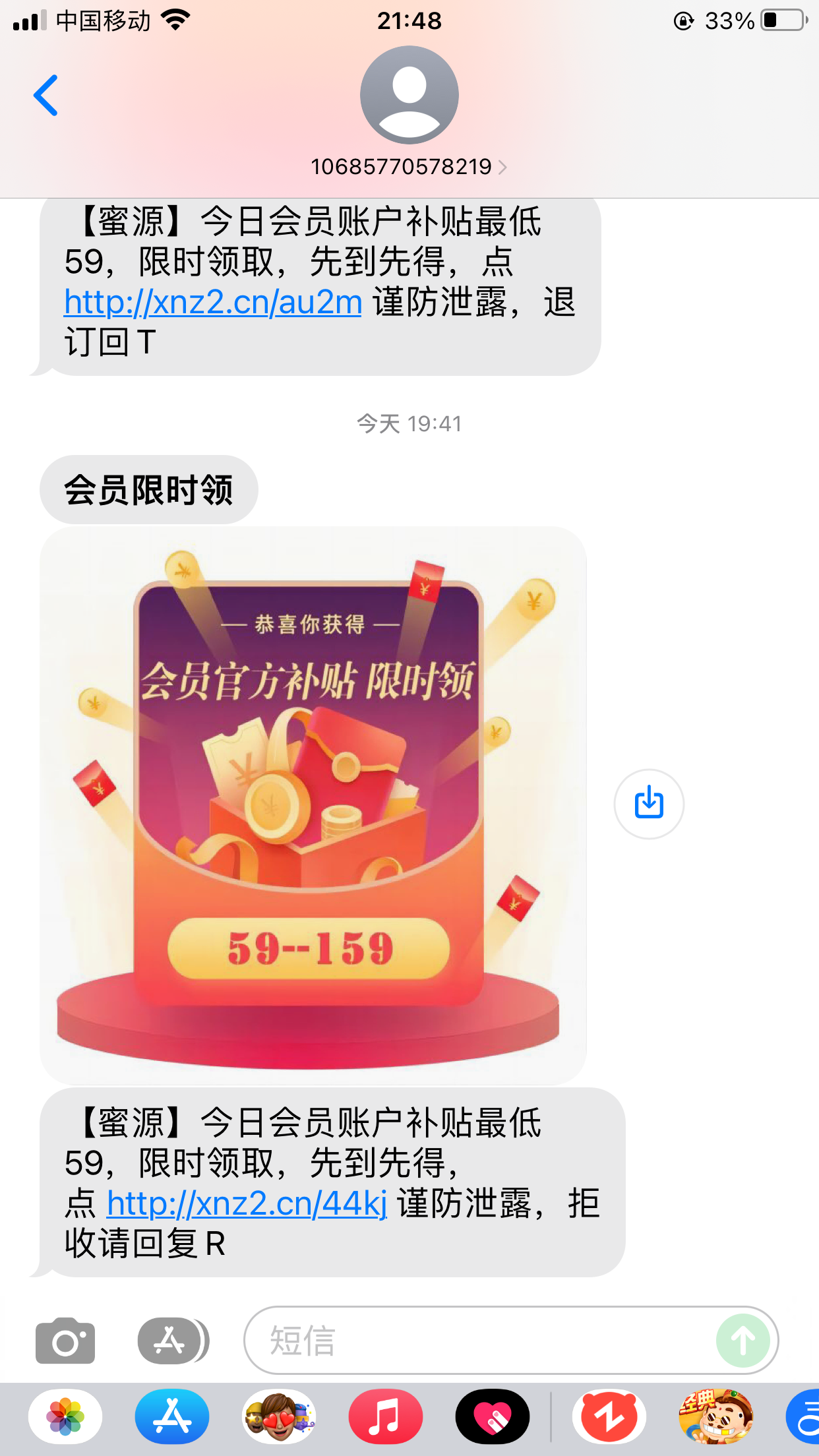 特邀短信图,然后没注册问的客服 客服没说送就只说充值送多少多少