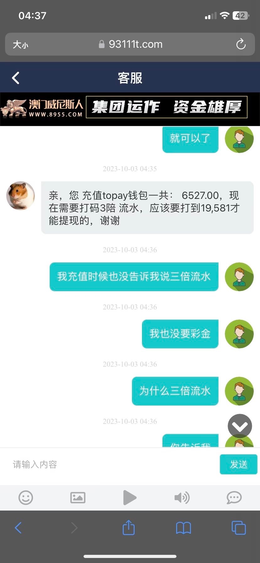威尼斯人黑款充值七千下款一千让打三倍流水打一万九流水打完也不让出款