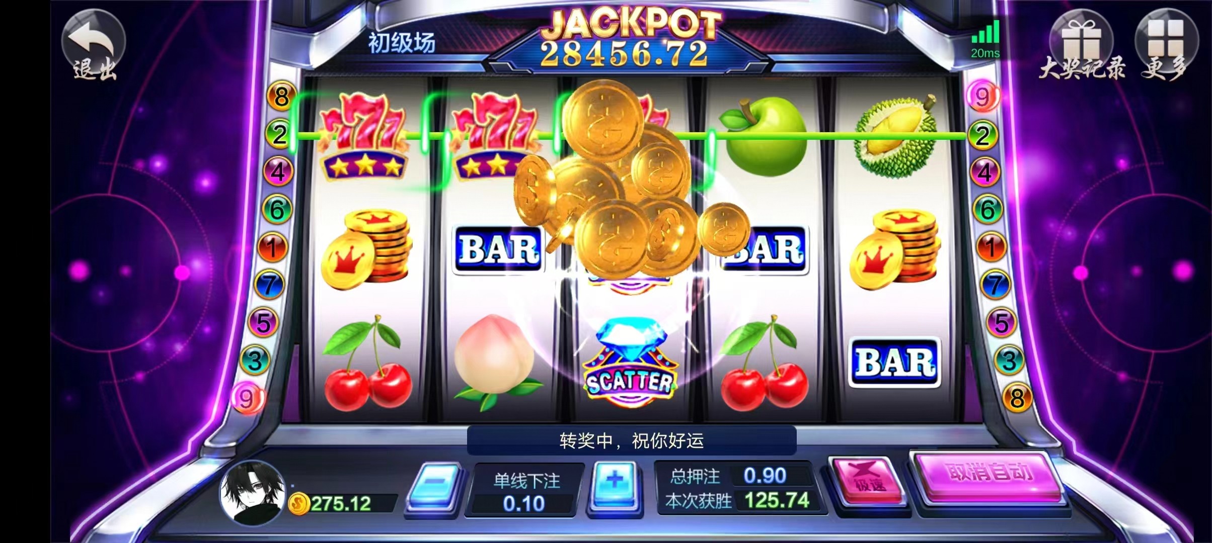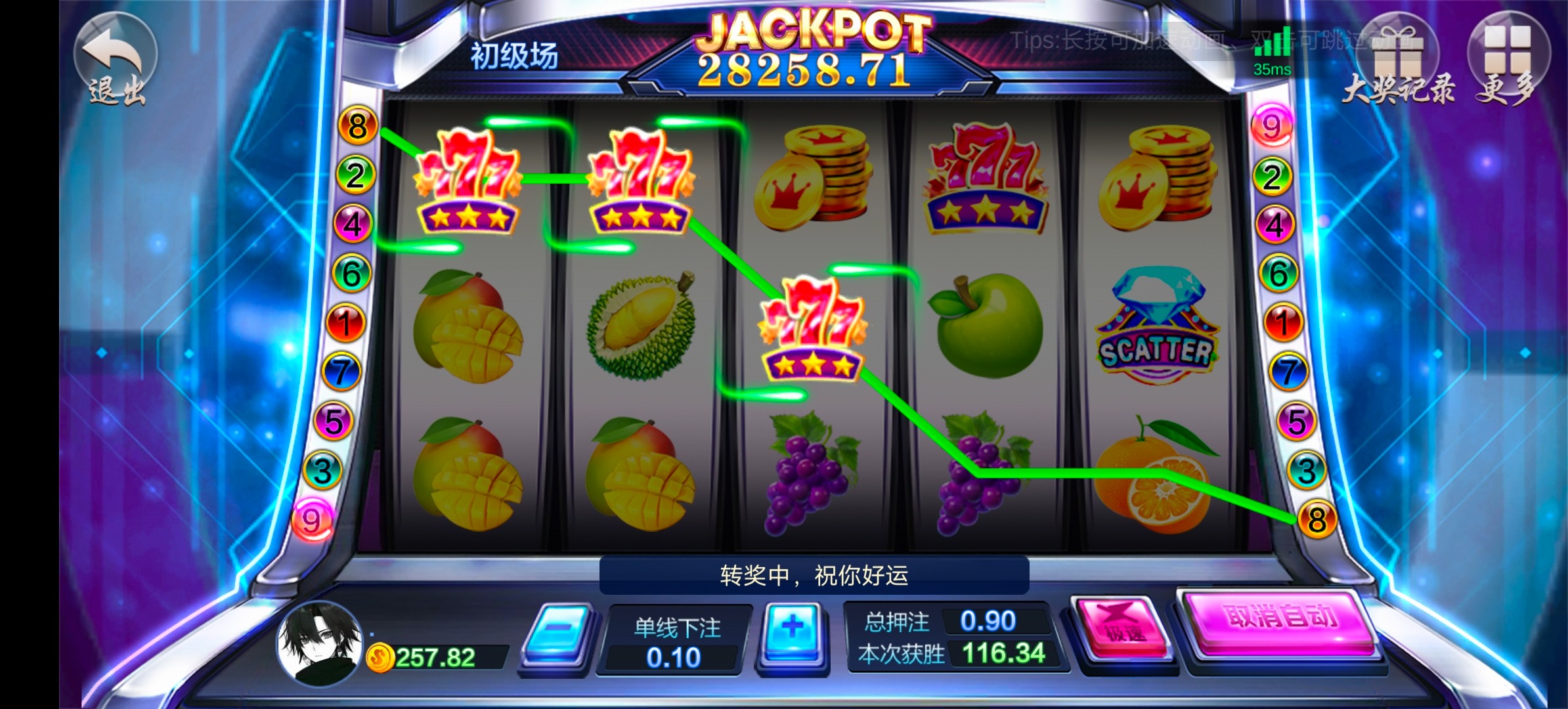 挺好打的电话去的  秒40   街机九线拉霸那个九毛一顿摇 直接一百多  提了100