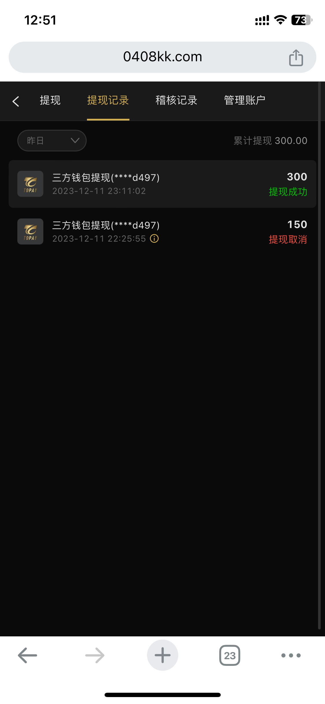 我又打上400了,提款好怕,昨天我提了300充了一个58不知道能不能到