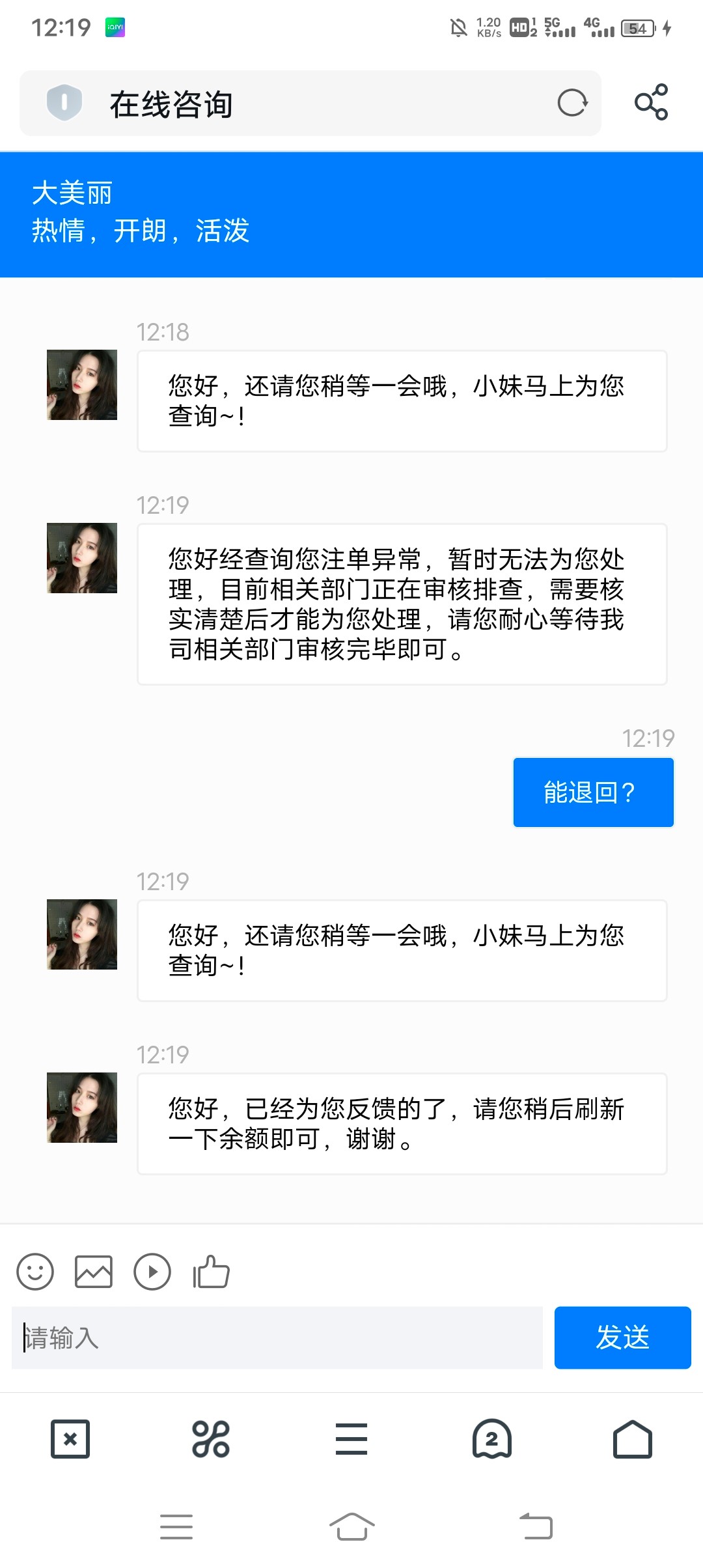 到啥到 没到客服时人机每次恢复就一句话 提交处理了正在排队14个小时了不可能到了的