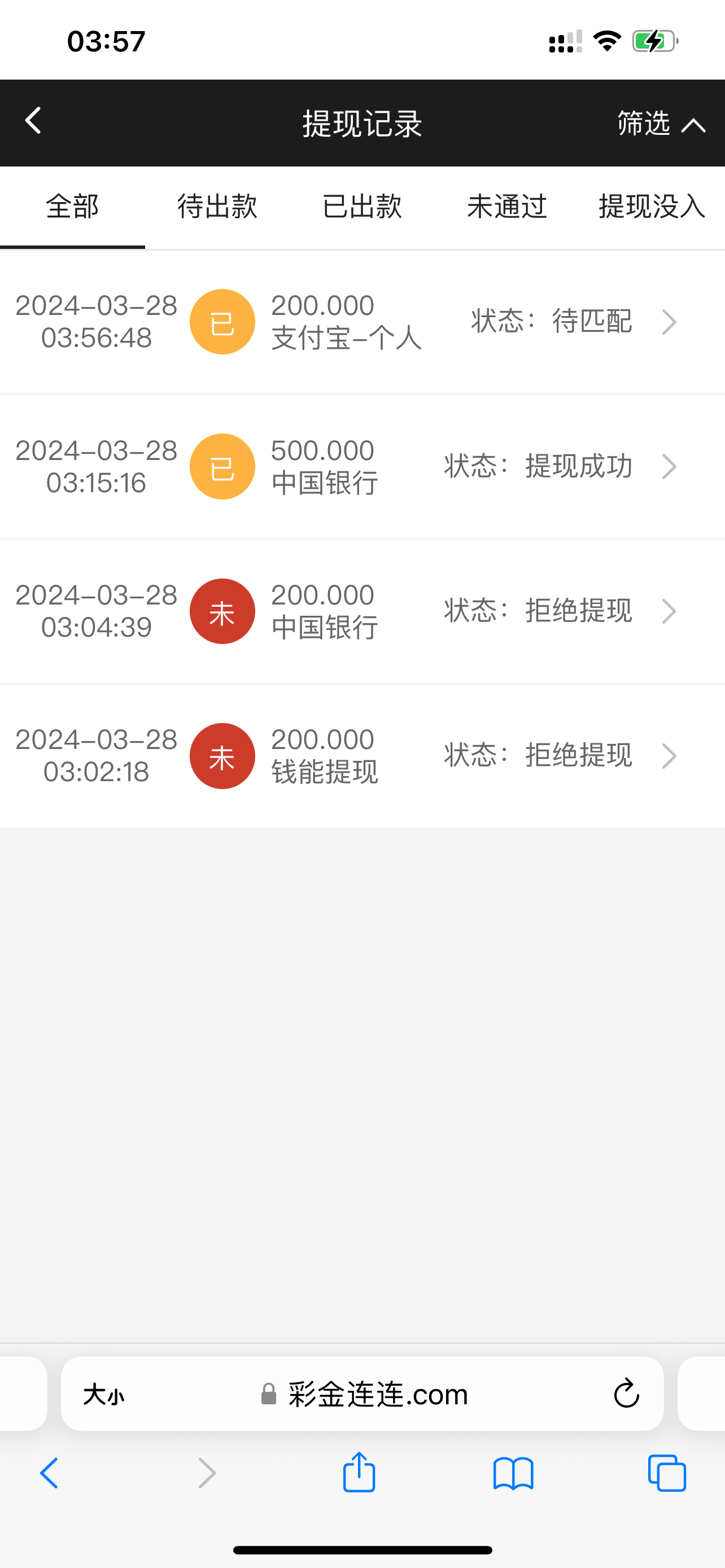 38打出243 已经到账 第一次没有全额提被退回了 第二次全额到了。玩彩网的