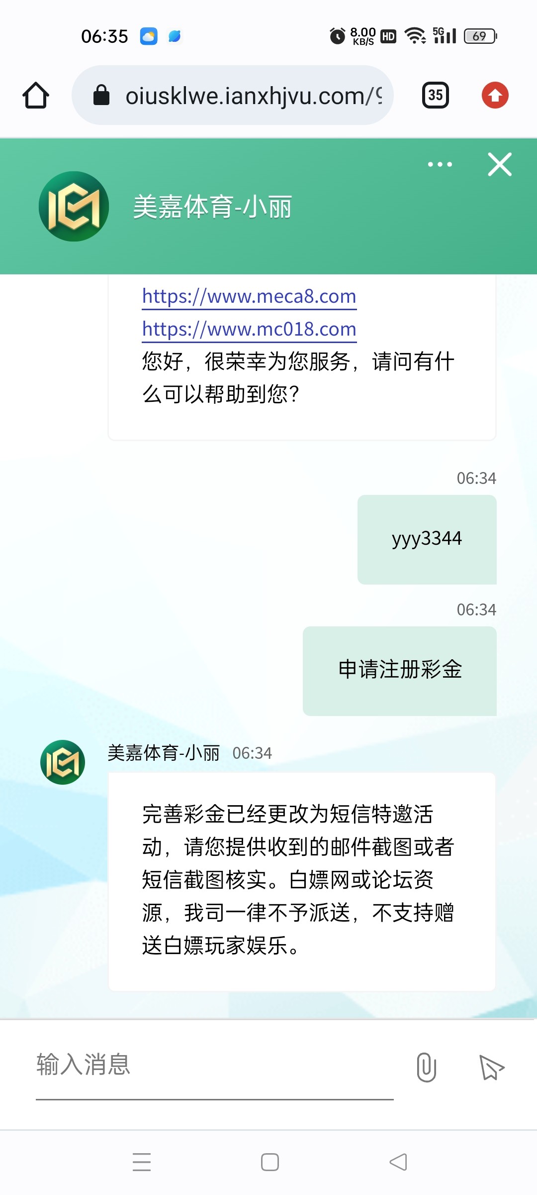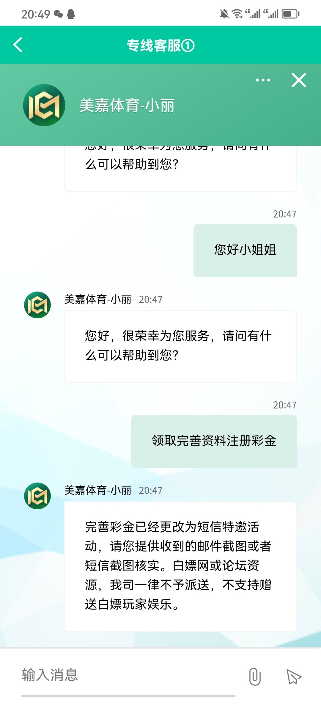 完善彩金已经更改为短信特邀活动,请您提供收到的邮件截图或者短信截图核实。白嫖网或论坛资源,我司一律不予派送,不支持赠送白嫖玩家娱乐。