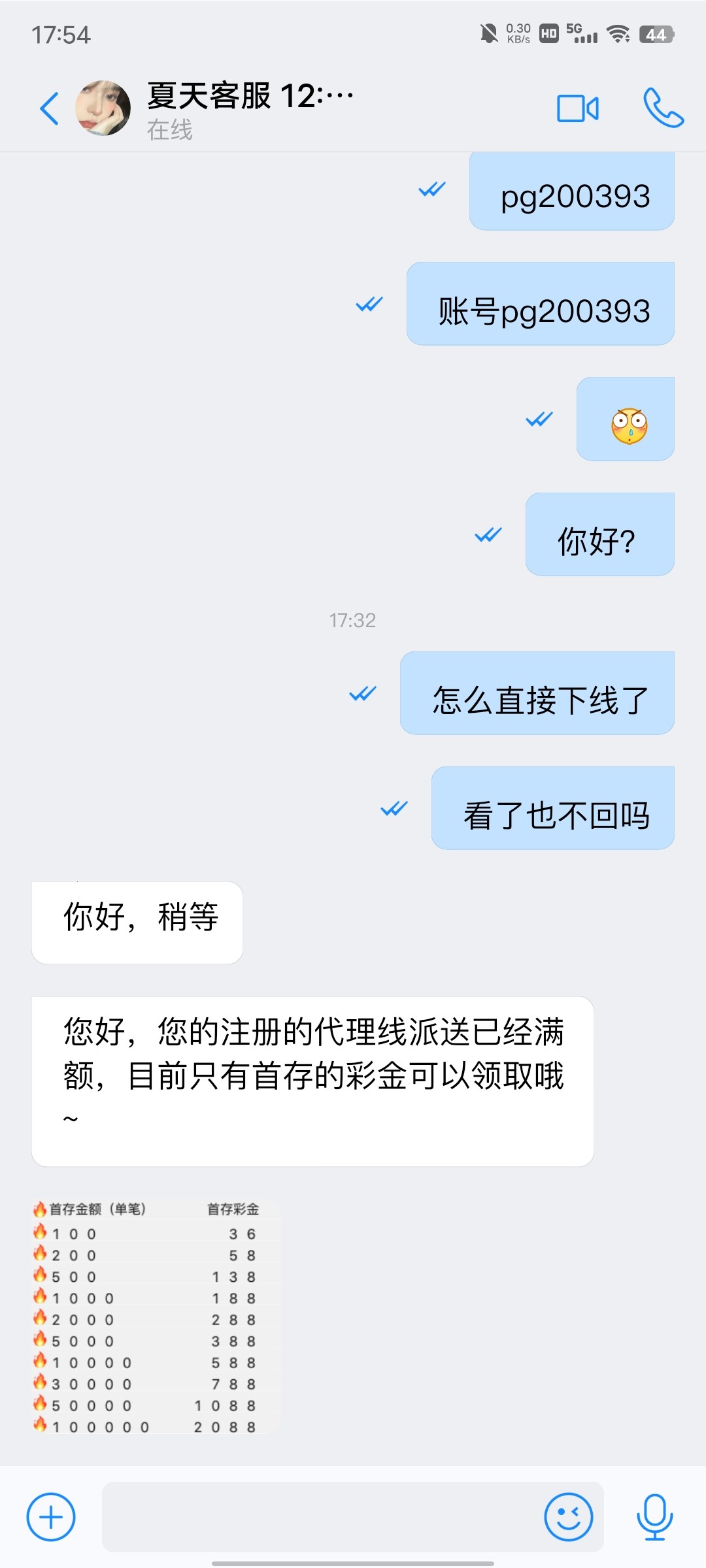 找游戏客服客服说冲100送18,,,到哪找28的