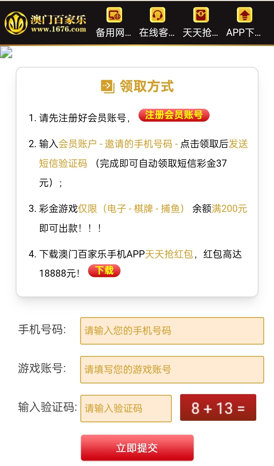 特邀碰瓷,先随便输入个账号看看是不是,是在注册发短信就好了,满200提款只能玩电子/棋牌/捕鱼