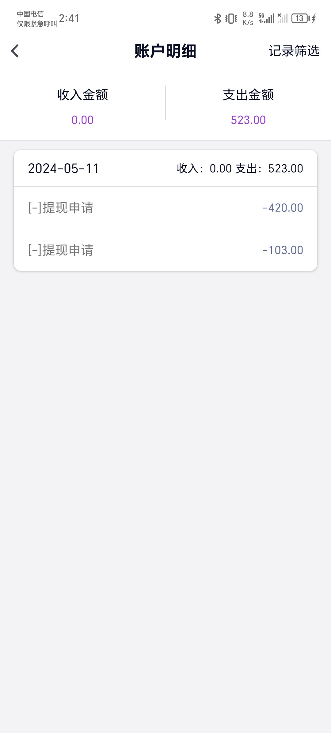 充了5次 就没提过一次