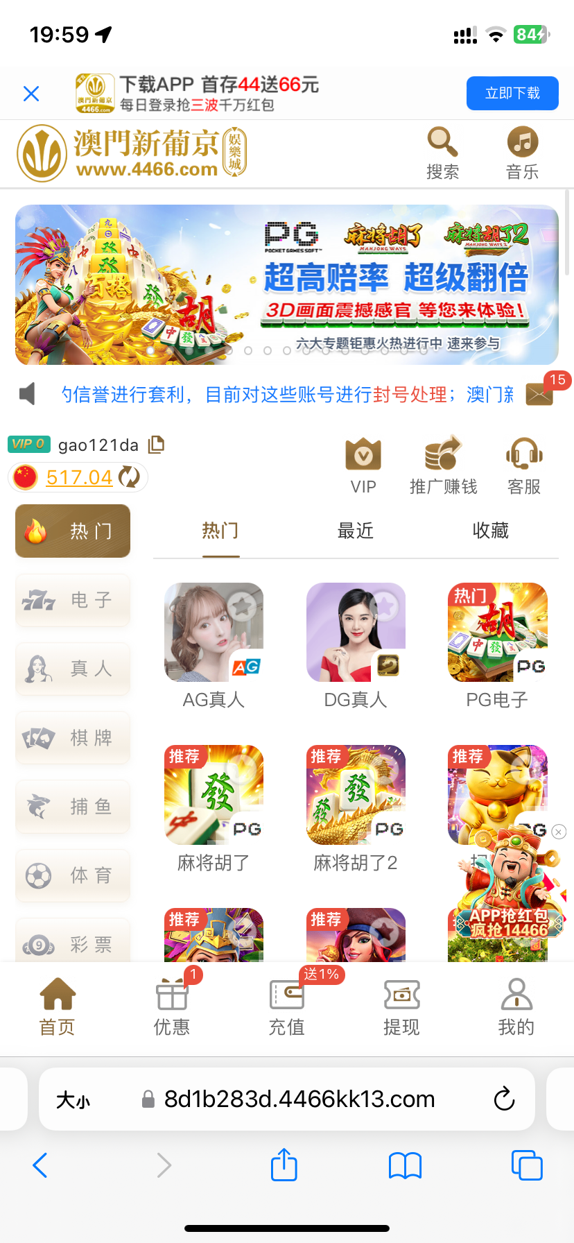 前面参加首存44加66上了500,后边晚上无聊打打就充了30玩玩摇pp不到十下就进了直接千倍,第一个这么给的台,也是来了