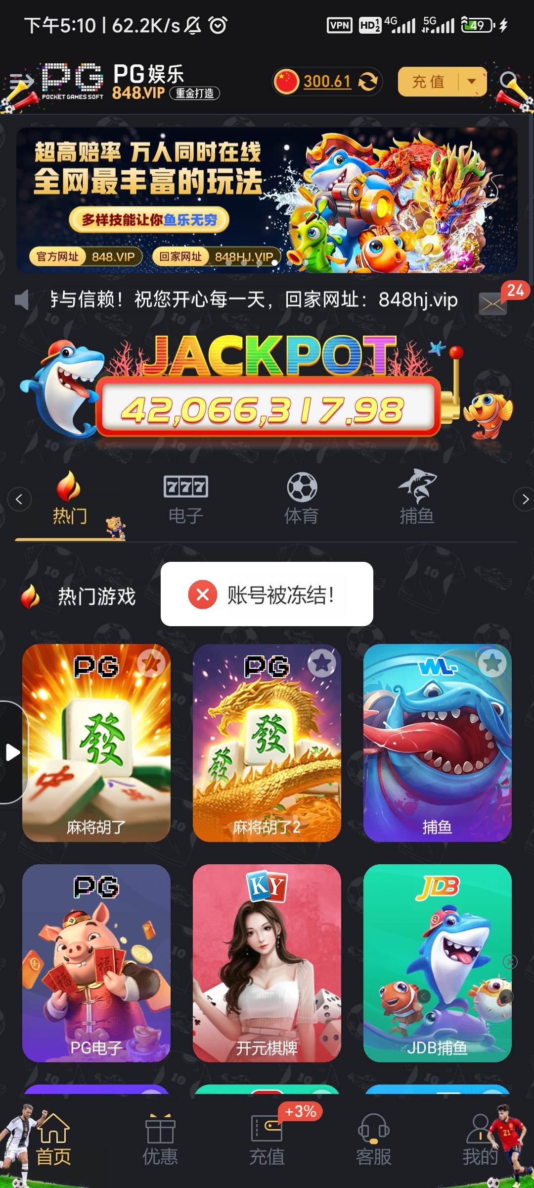PG848黑台上100下300都封号