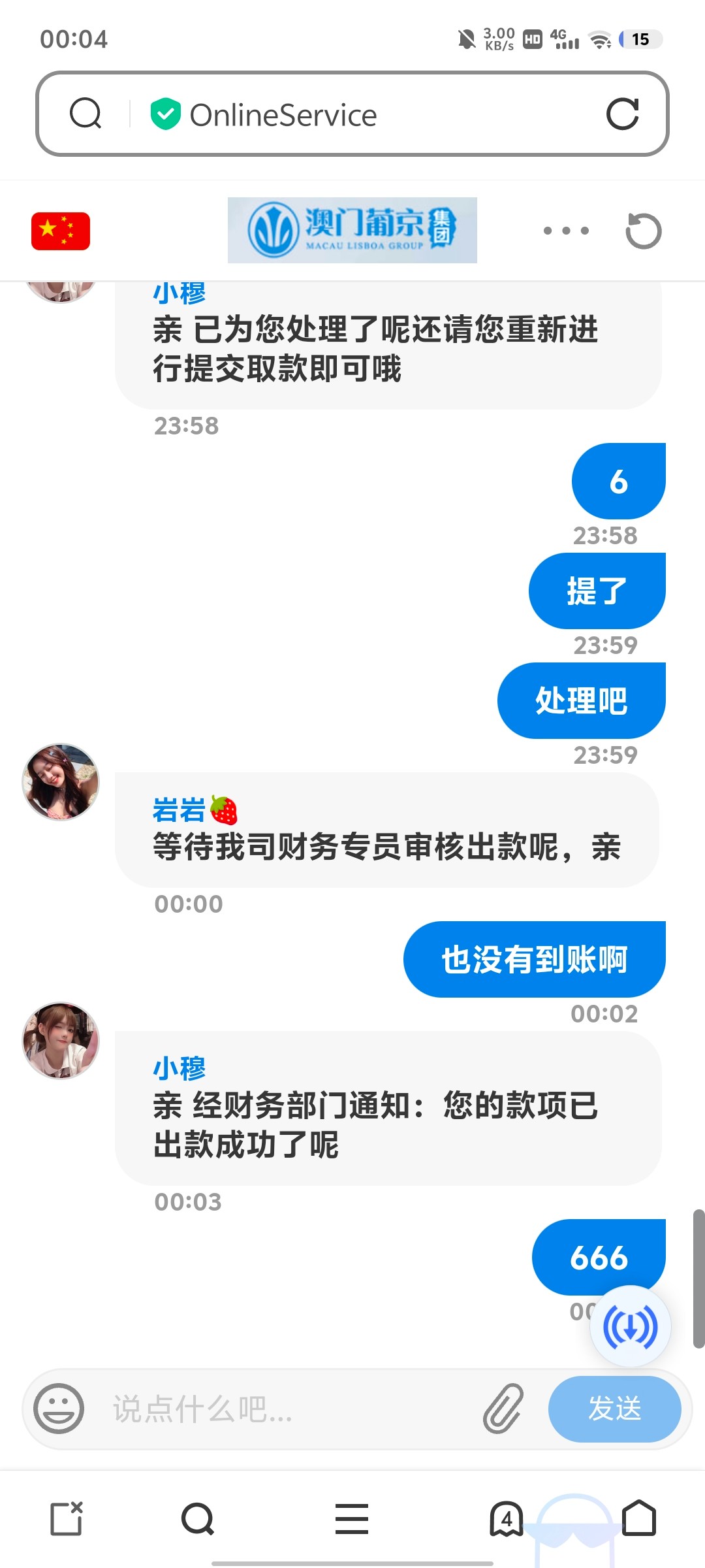先是拒绝,说账号有风险,充值100,后面冲完以后提现300,然后提现两次,全部退回,第一次退回300让我提供是不是本人使用的手机号,提供了以后,重新提款,第二次退回什么也没说,直接让我重新提款,然后一分钟没到,直接跟我说到账了,空汇,100都黑,你们自己看着来吧