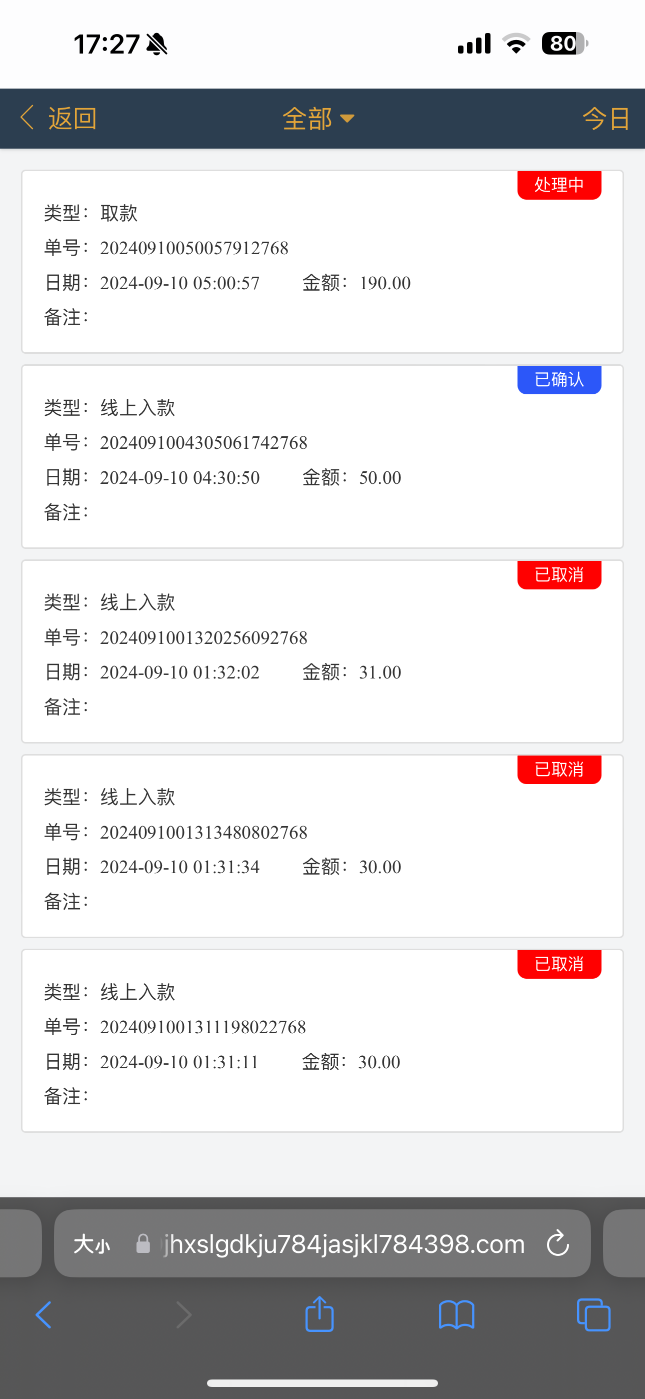 充50玩玩结果提了190一直显示处理中,一直给我打款190打了四笔