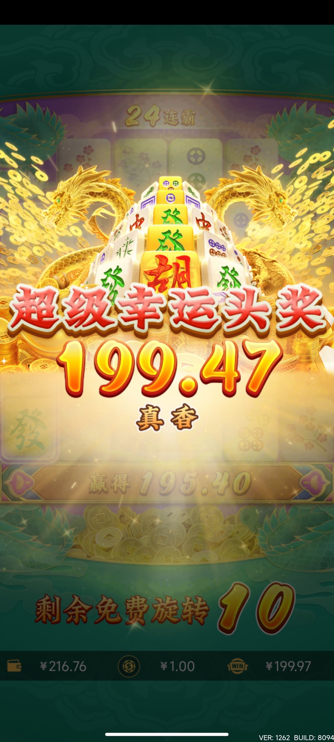 麒麟我爆了差不多两个500倍 麻将2也爆了500倍