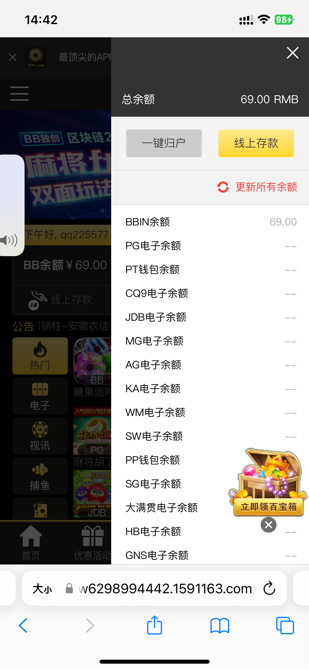 有号的也能试试,我以前也玩这个台子,不黑,刚刚试了到啦69,出款有时候要手持