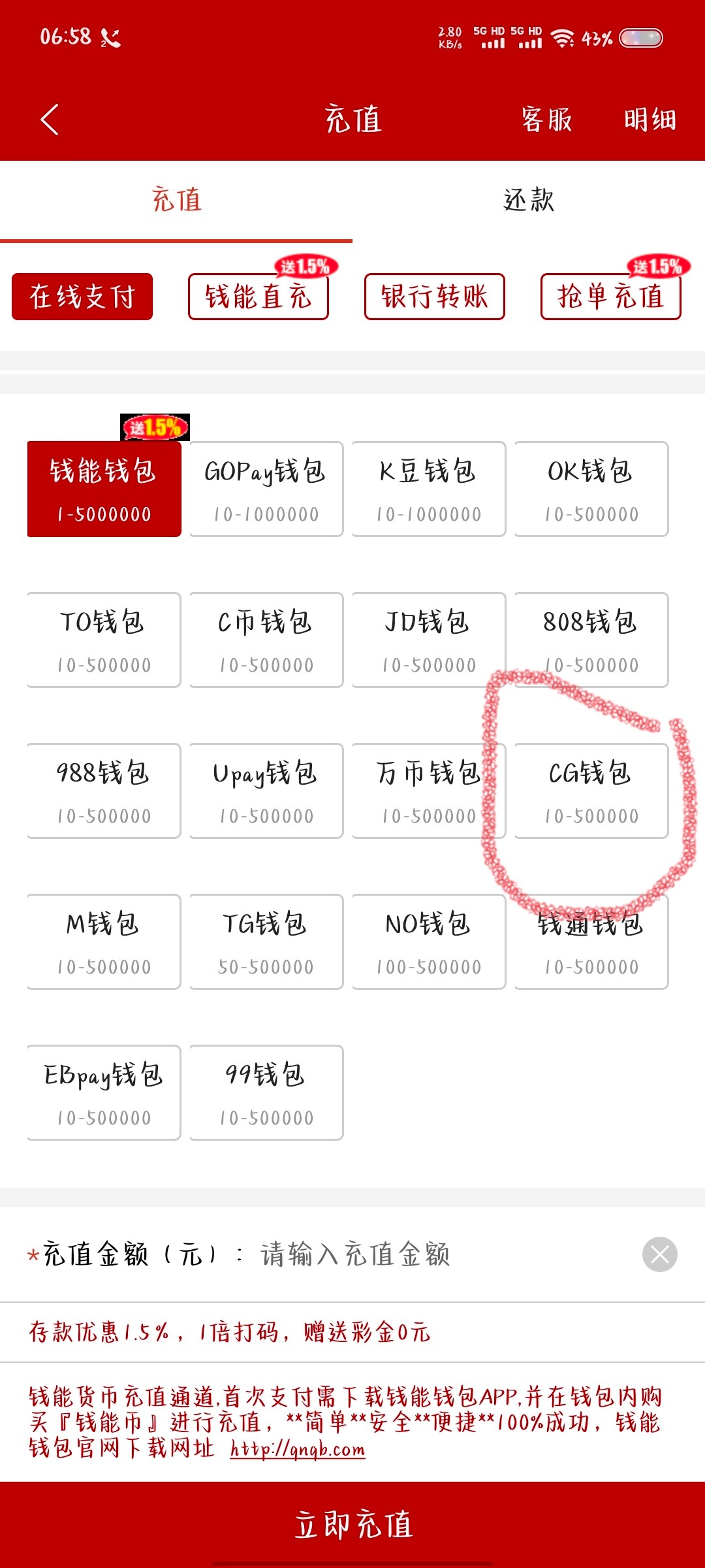 CGpay钱包充值火热上线注册送、笔笔存款送奖励1、使用CGpay钱包进行存款即可获得存款金额“3%”奖励返利。2、CGpay钱包注册即送”18“元!3、无视风控、安全、便捷、高效、智能
