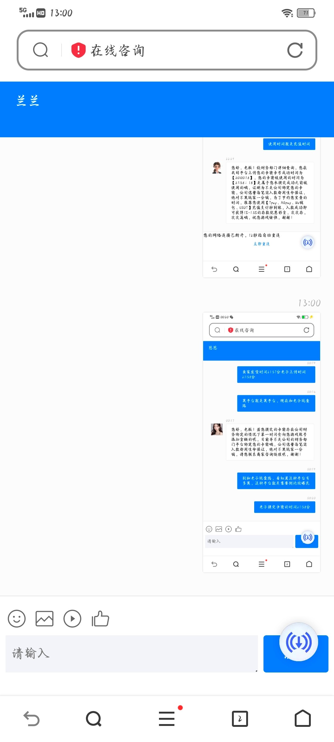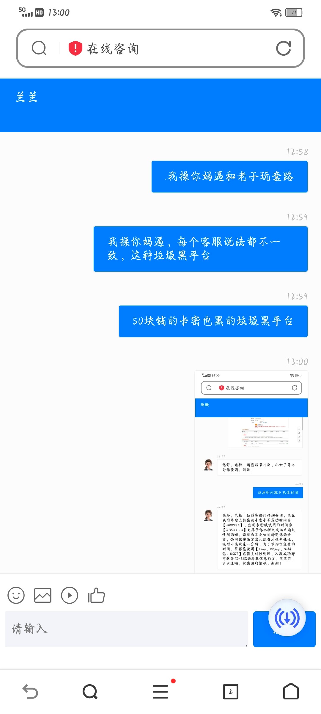 50快钱卡密充值不给到账客服还不会回复信息,直接查不到卡米信息