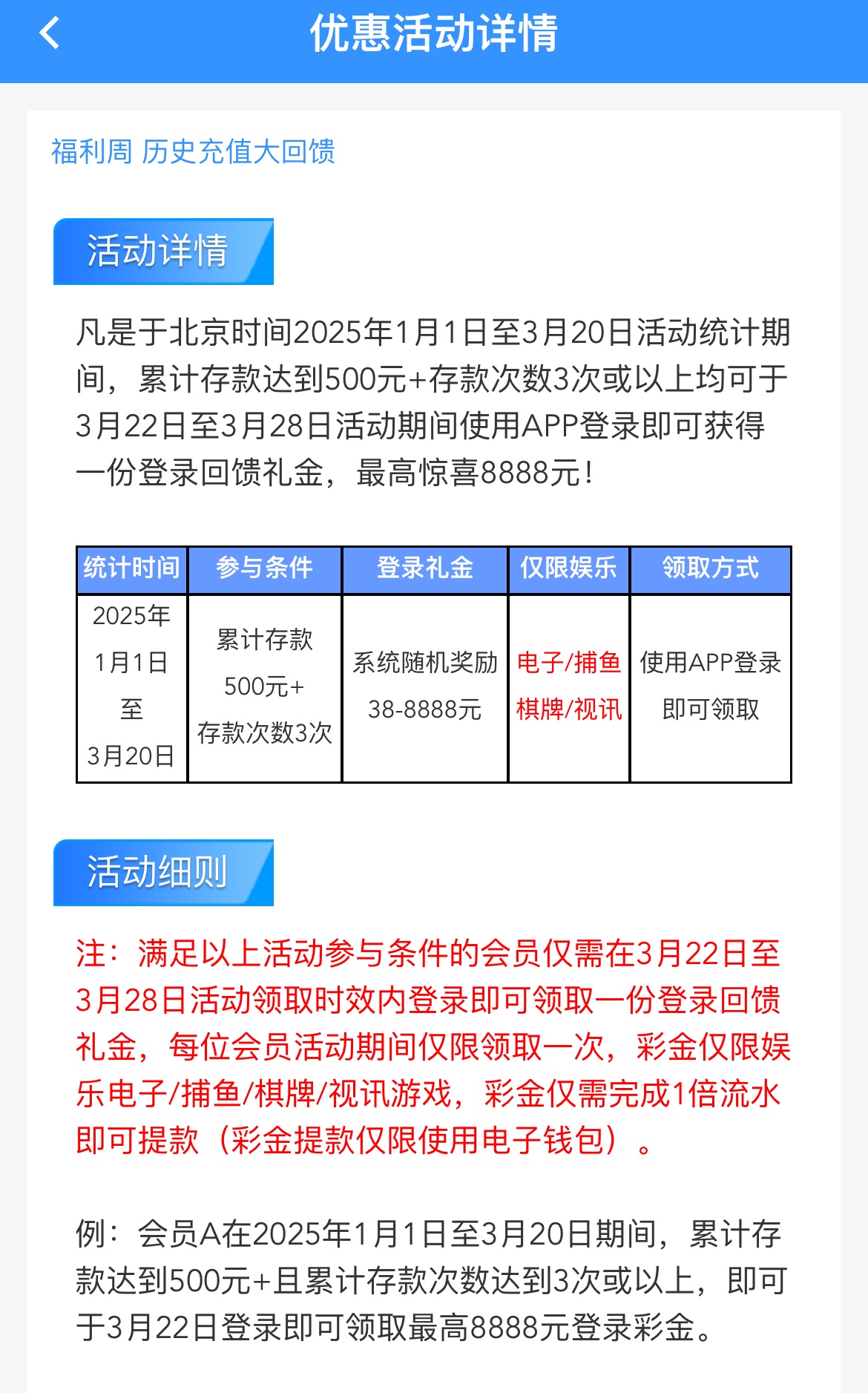 1月1号至3月20号累计存款500+存款3次以上回馈38+ 限电子棋牌捕鱼视讯,符合的兄弟22号登入APP领取