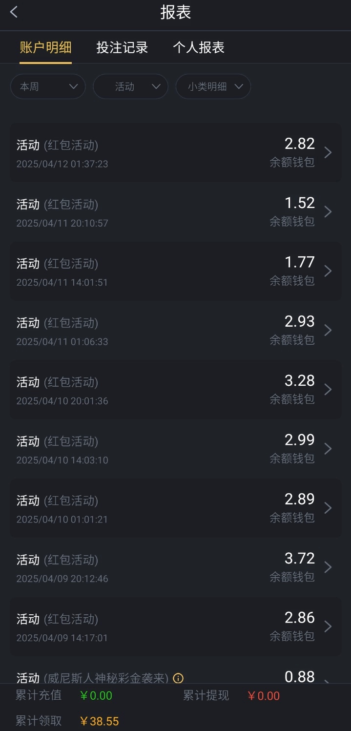 这两个台子近期充值过的可以去抢红包,每次红包1.5~3块钱左右,一天3轮,可以两个台子配合打出来,10块钱就可以提现