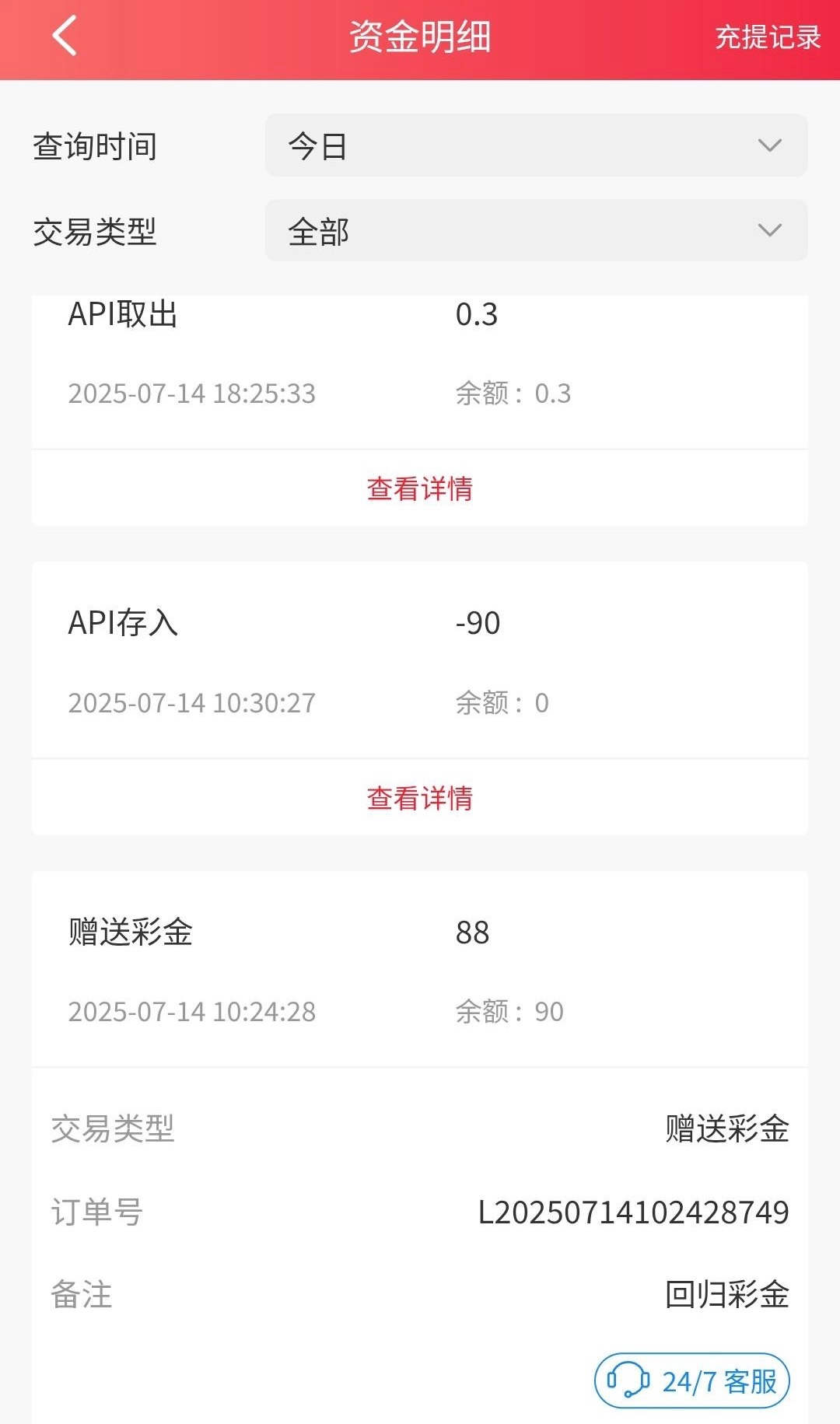出款情况:自测(