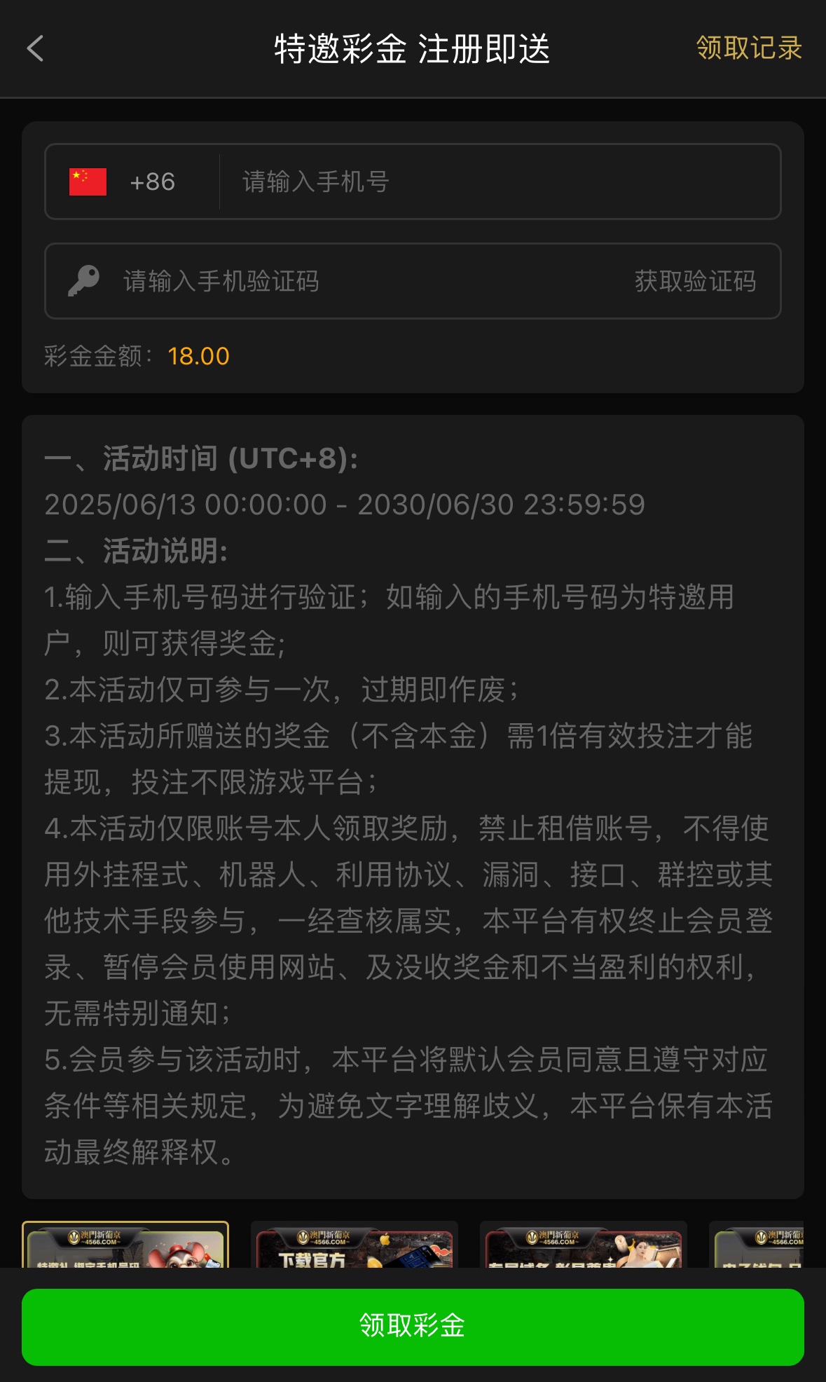 特邀碰瓷,注册完善资料优惠里自助领取彩金一倍流水,不限制游戏