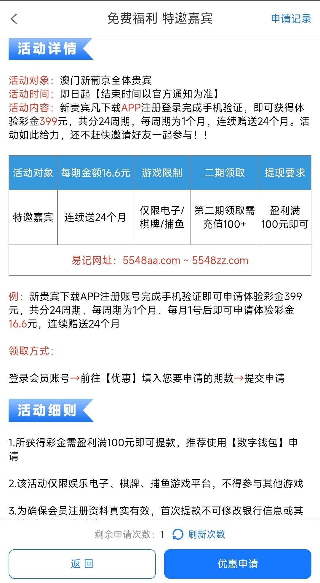 查手机号,下载APP注册完成手机号验证在优惠里申请此彩金,没有流水限制,只能娱乐电子/捕鱼/棋牌,盈利满100提款