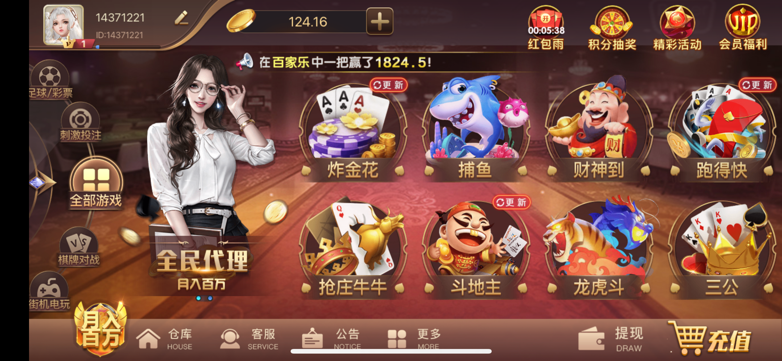 玩抢庄牛牛,财神到,通比牛牛。