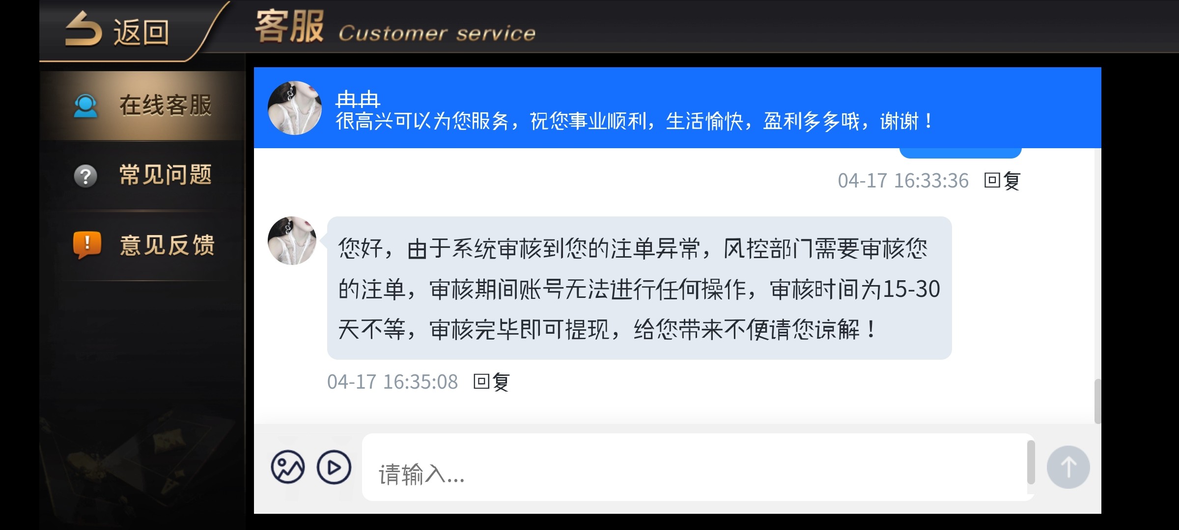 提现直接风控了,登录不上去,说审核15天,我去