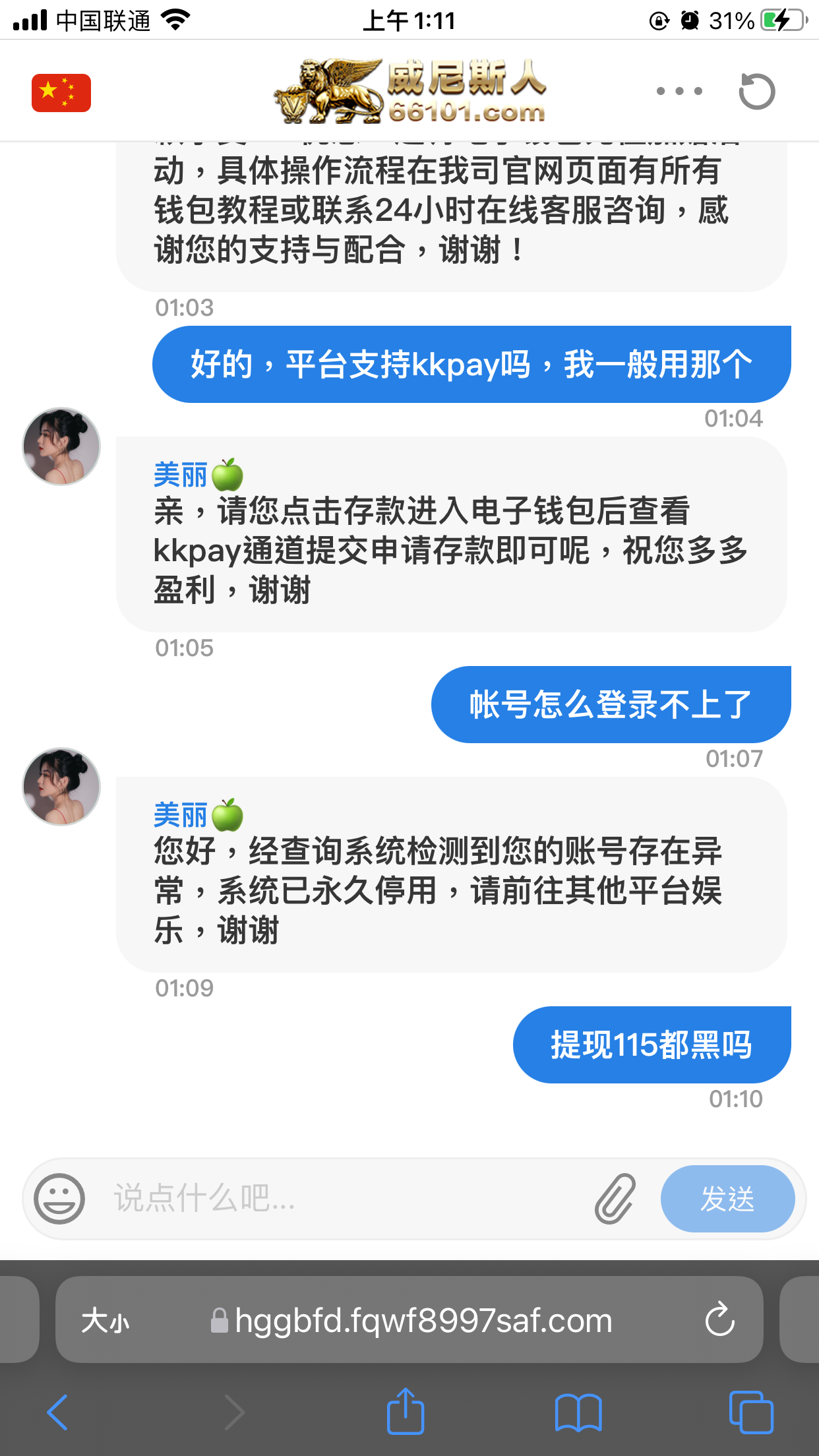 取现黑,8.8打到400  说异常注单,  通送的碰碰运气  别充值