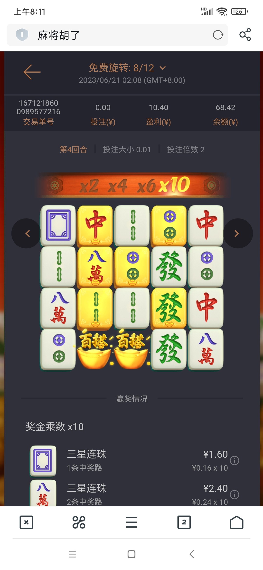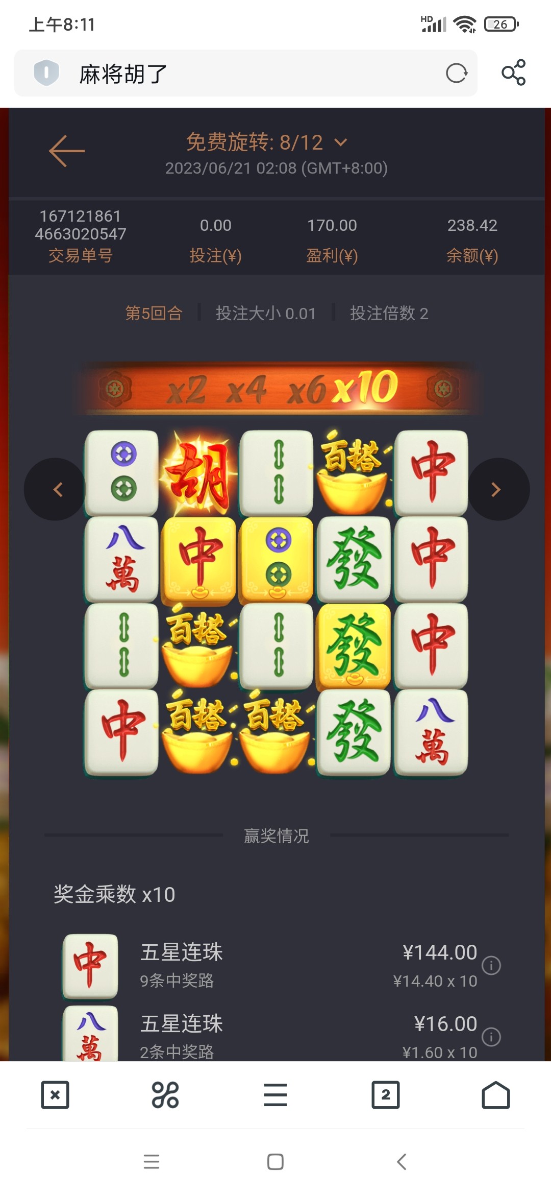 麻将从来没中过超过200,最多几十,垃圾游戏